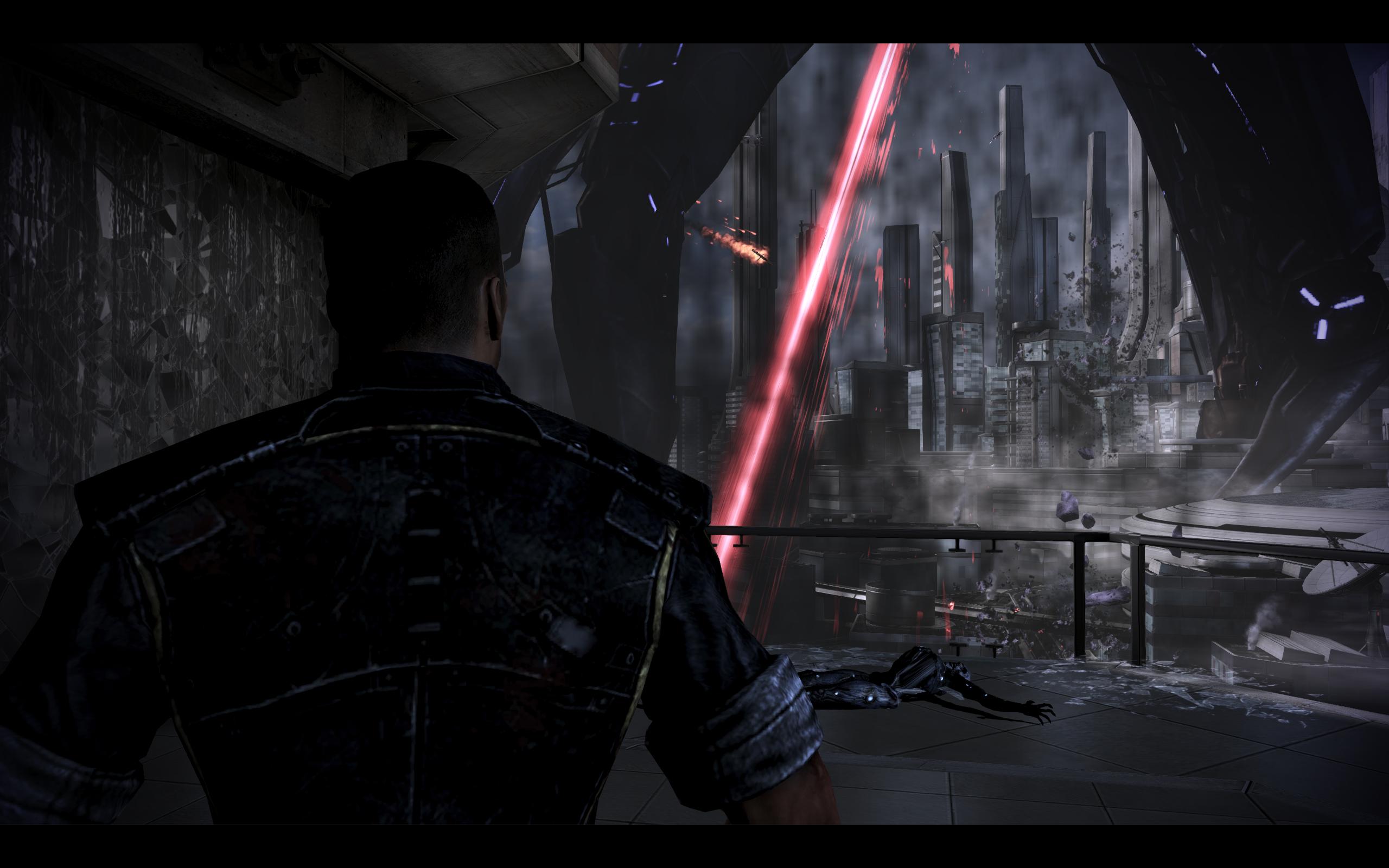 Выбравшись из погибающего здания, Шепард и Андерсон обнаружили множество шагающих машин Жнецов, планомерно разрушающих город. Единственный путь к спасению лежал в космопорт, где швартовалась «Нормандия».