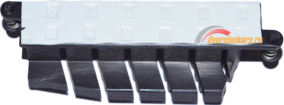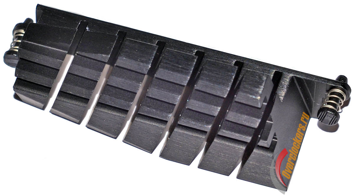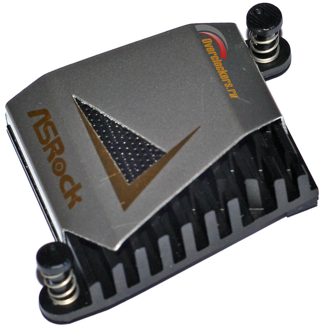 Как и в случае с большинством других бюджетных материнских плат, для крепления радиатора используются подпружиненные пластмассовые «гвозди».