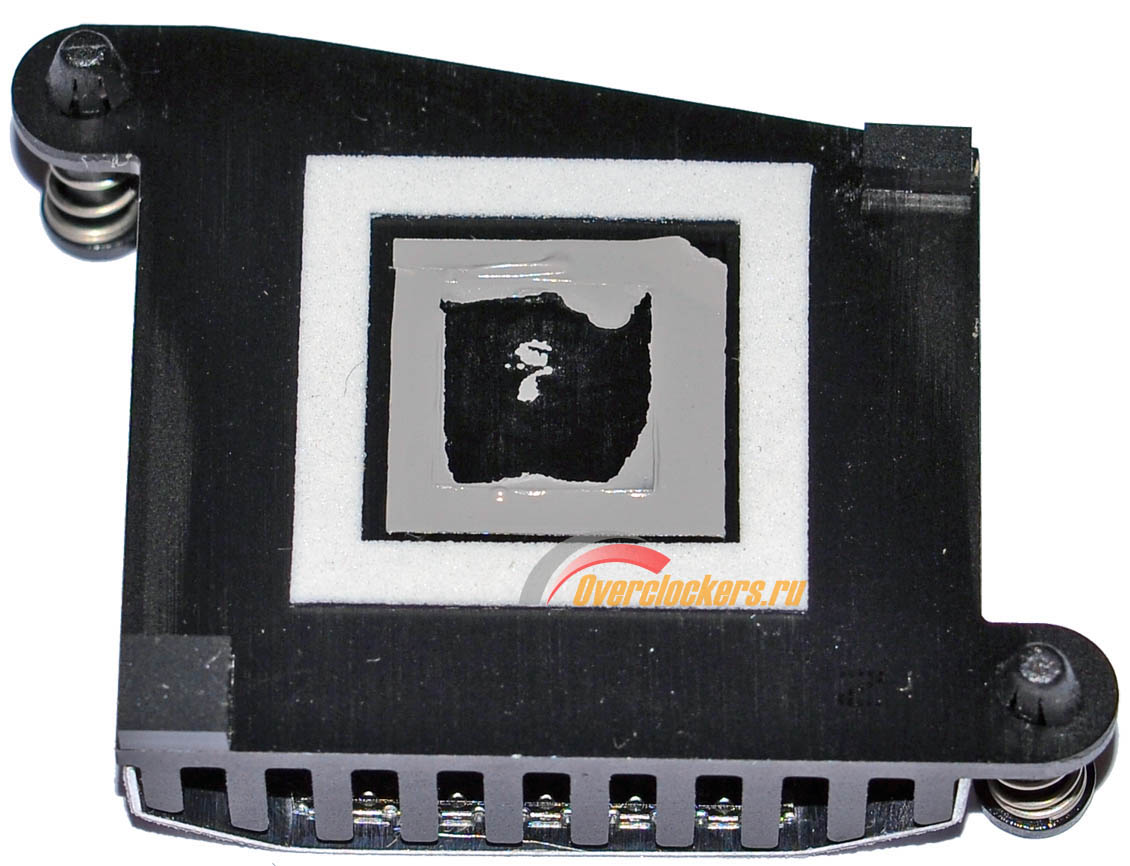 Контакт радиатора с элементами VRM осуществляется через термопрокладку средней толщины, проблем с контактом силовых элементов и радиатора нет.