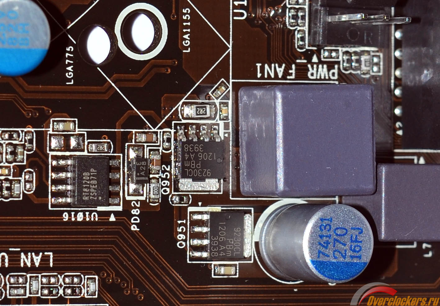 Также используются и другие транзисторы, на каждую из четырех фаз VCore у Z77 Pro4 приходится по одному 2630CL и 9230CL вместо 3030AL/9030AL. В преобразователе питания встроенного графического ядра применены два PH6030AL и два 9230CL.