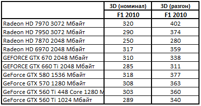 После разгона GeForce GTX 660 Ti 2048 Мбайт заняла четвертую строчку, отстав только от Radeon HD 7970 3072 Мбайт, Radeon HD 7950 3072 Мбайт и GeForce GTX 670 2048 Мбайт.