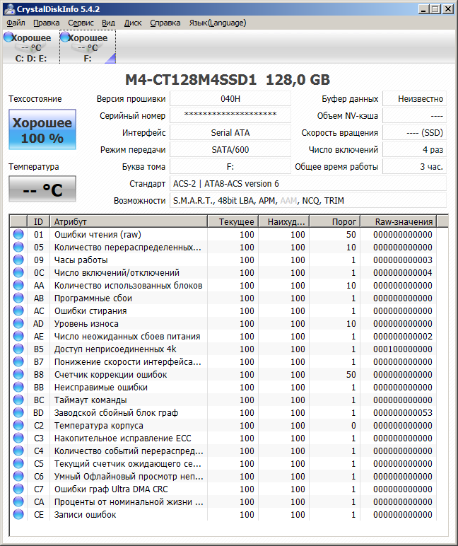 SMART достаточно обширный, но термомониторинг отсутствует напрочь. Как нет и статистики записанных/прочитанных данных.