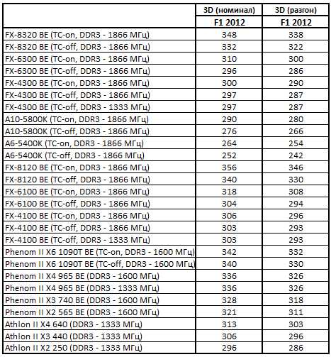 - FX-8320 BE (TC-off, DDR3 - 1866 МГц) в паритете (+/- 3%) с Phenom II X6 1090T BE (TC-off, DDR3 - 1600 МГц).