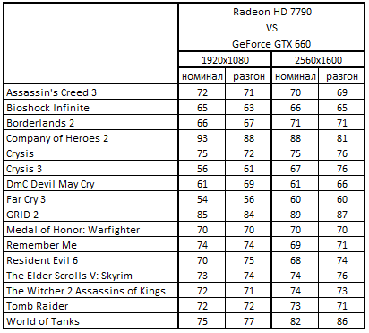 - Radeon HD 7790 2048 Мбайт медленнее GeForce GTX 660 2048 Мбайт на 35-41%;