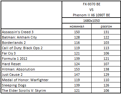 - FX-9370 BE быстрее Phenom II X6 1090T BE на 4-19% в 3 играх.