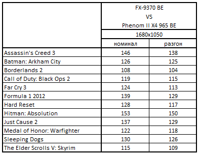- FX-9370 BE быстрее Phenom II X4 965 BE на 4-9% в 1 игре.