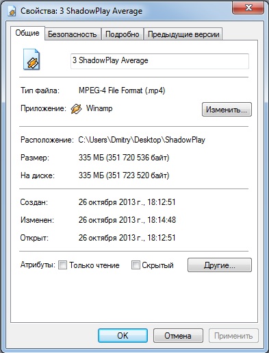 Как плюс технологии NVIDIA ShadowPlay можно отметить тот факт, что она сразу осуществляет захват видео в данном формате. Так, при использовании высокого качества захвата видео был записан ролик размером 788 Мбайт.