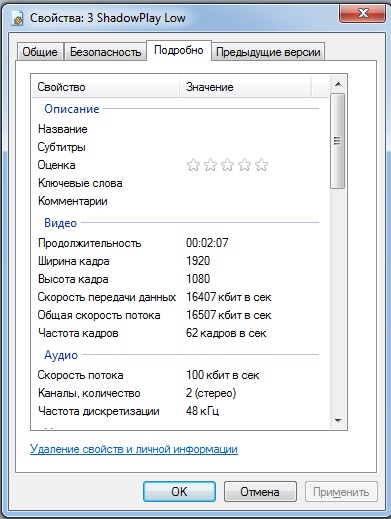 При использовании утилиты Bandicam был получен файл размером 786 Мбайт. Его свойства приведены на скриншотах.