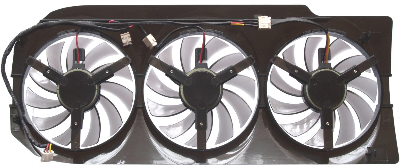 Для облегчения общего веса СО кожух выполнен из тонкой пластмассы: конструкция получилась очень хрупкая, при ее демонтаже стоит проявлять аккуратность. К нему крепятся три низкопрофильных вентилятора с диаметром крыльчатки 77 мм.