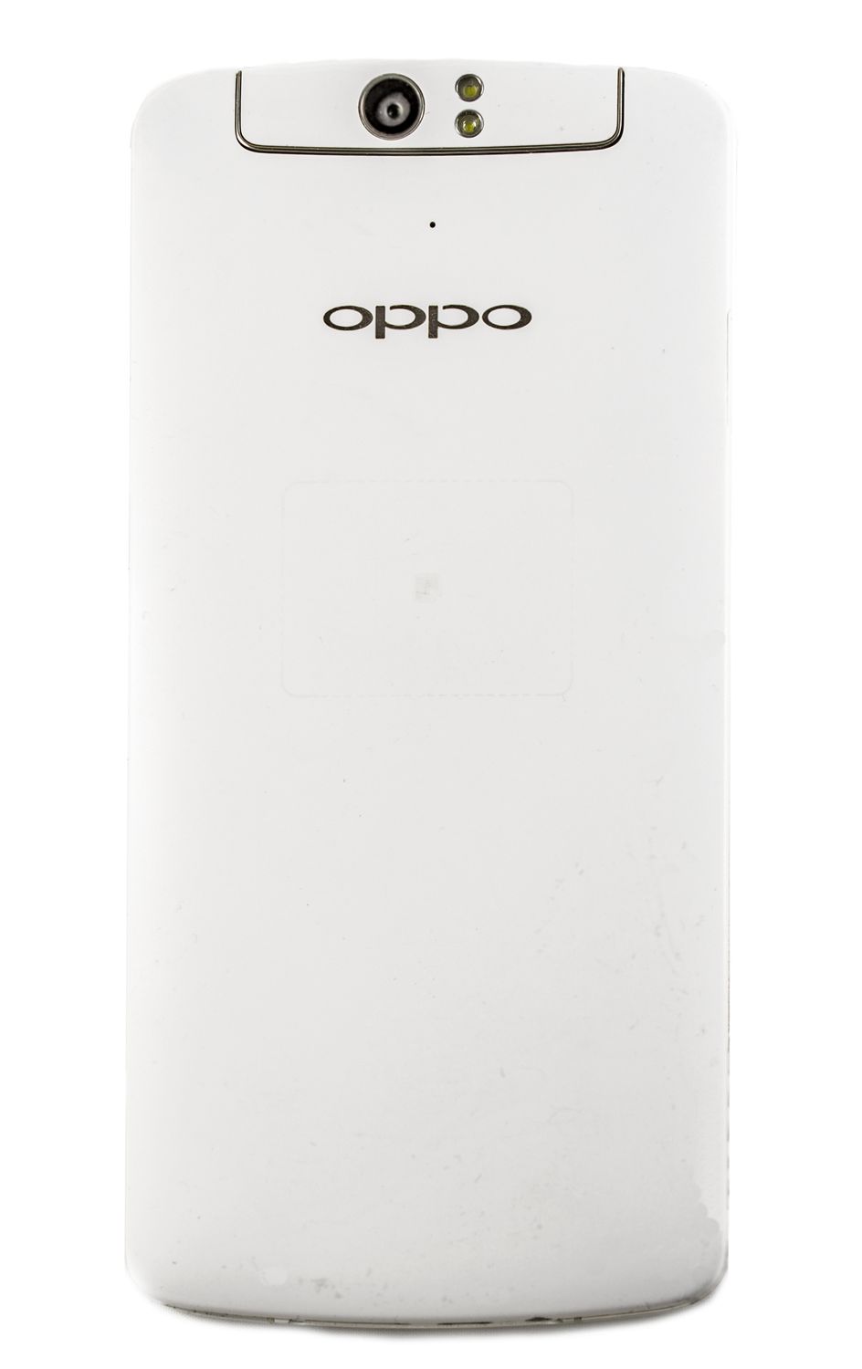 Оставшаяся часть оставлена тонкой белой боковой рамке, увеличивающейся в верхней и нижней областях. Благодаря такому решению Oppo N1 выглядит стильно.