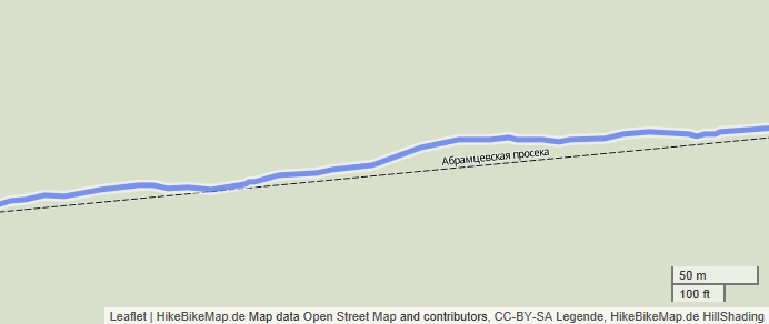 Для проверки работы навигации в «боевых условиях» была сделана запись трека во время небольшой велопрогулки Преображенка – Гольяново (10 км). Часть этого трека, относящуюся к прямой, как стрела, Абрамцевской просеке, можно посмотреть ниже: