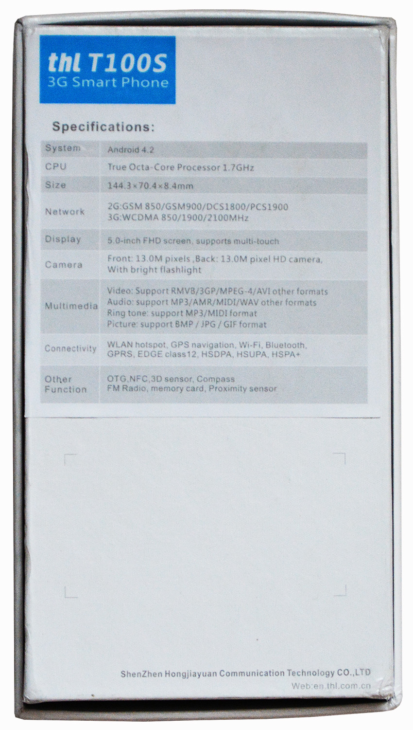 Модель ThL поставляется в белой картонной коробке средних размеров. К качеству и дизайну тары нет никаких претензий. Упаковка оформлена в духе минимализма – на верхней части размещено название бренда, а боковые стороны лишены какой-либо информации.