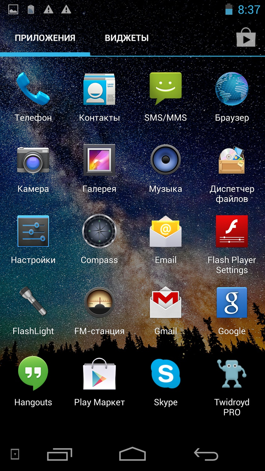 Дополнительные приложения можно пересчитать по пальцам. Это Skype, компас, фонарик (с возможностью светить либо дисплеем, либо светодиодом вспышки на выбор) и Twidroyd.