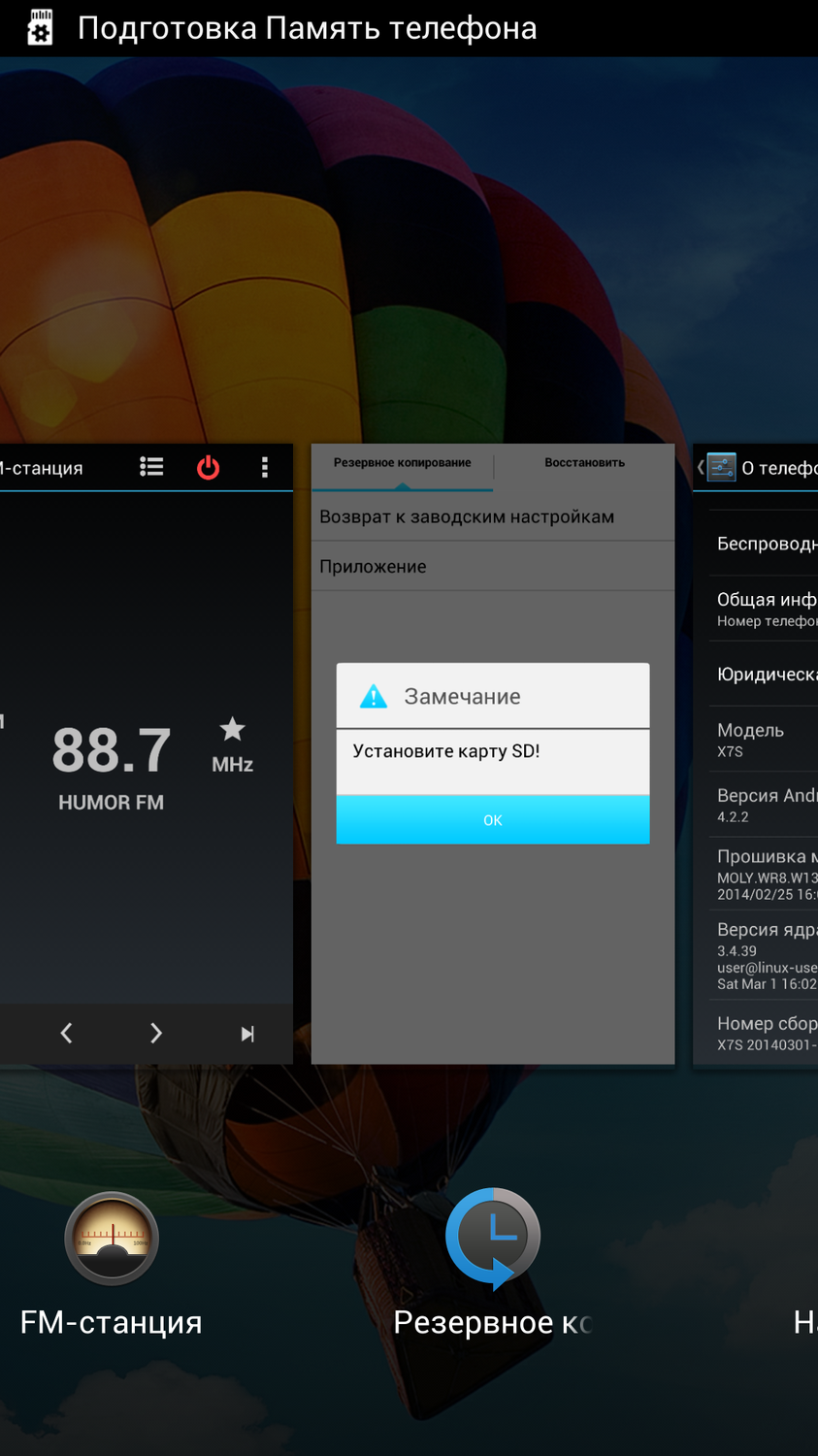В дополнительных приложениях предусмотрено программное обеспечение для локального «бэкапа» данных приложений, для корректной работы требуется наличие microSD карточки.