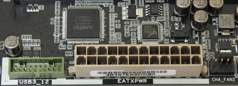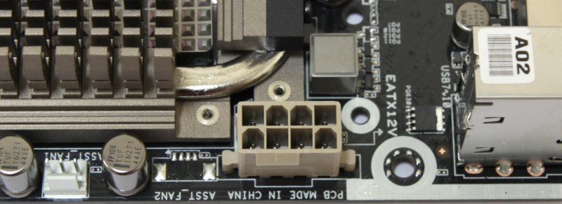 Питание на плату подается посредством двух разъемов: основного 24-х и дополнительного 8-ми контактных коннекторов ATX.