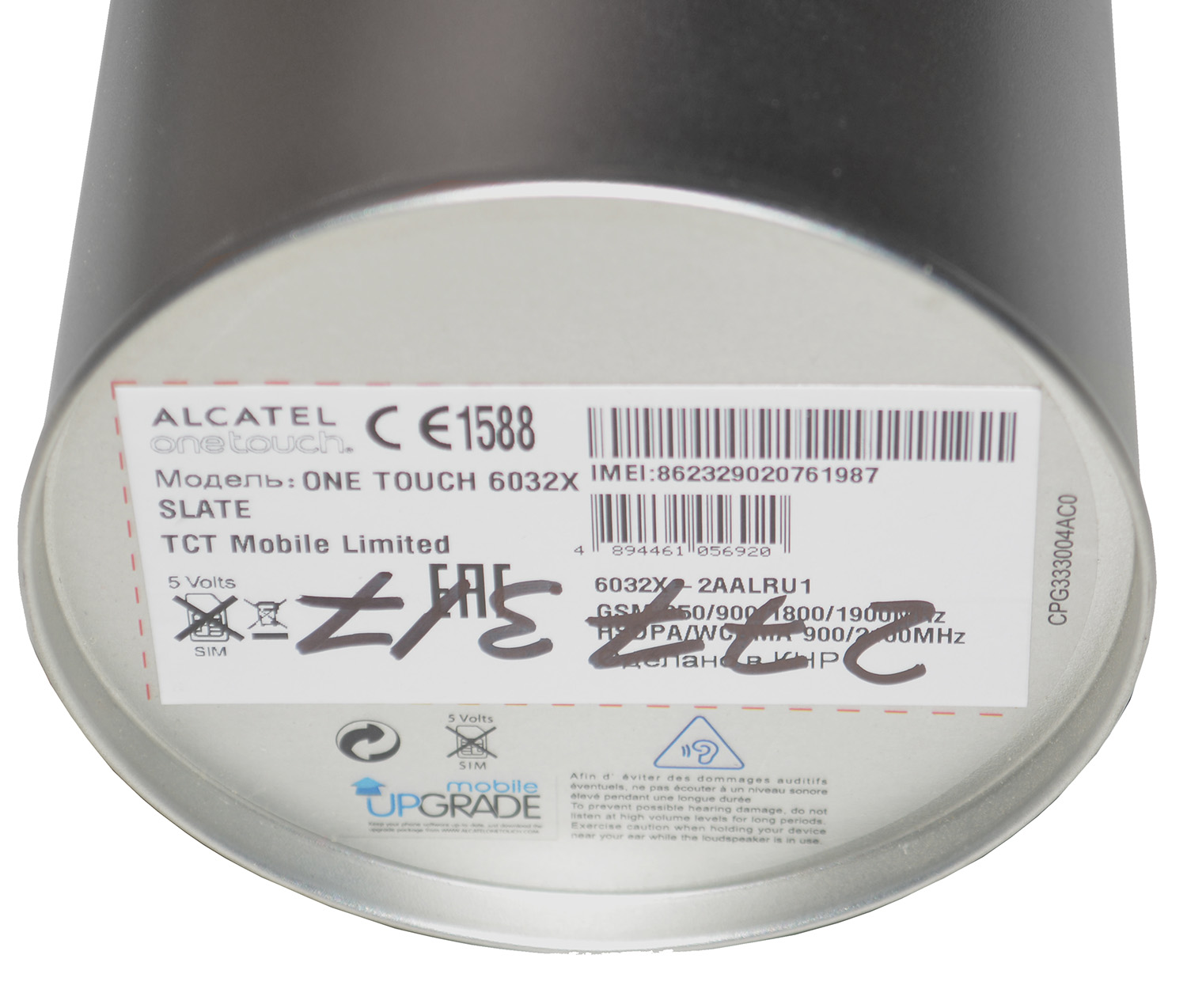 На дне скрывается наклейка, на которой приводятся сведения об изготовителе, модель и IMEI.