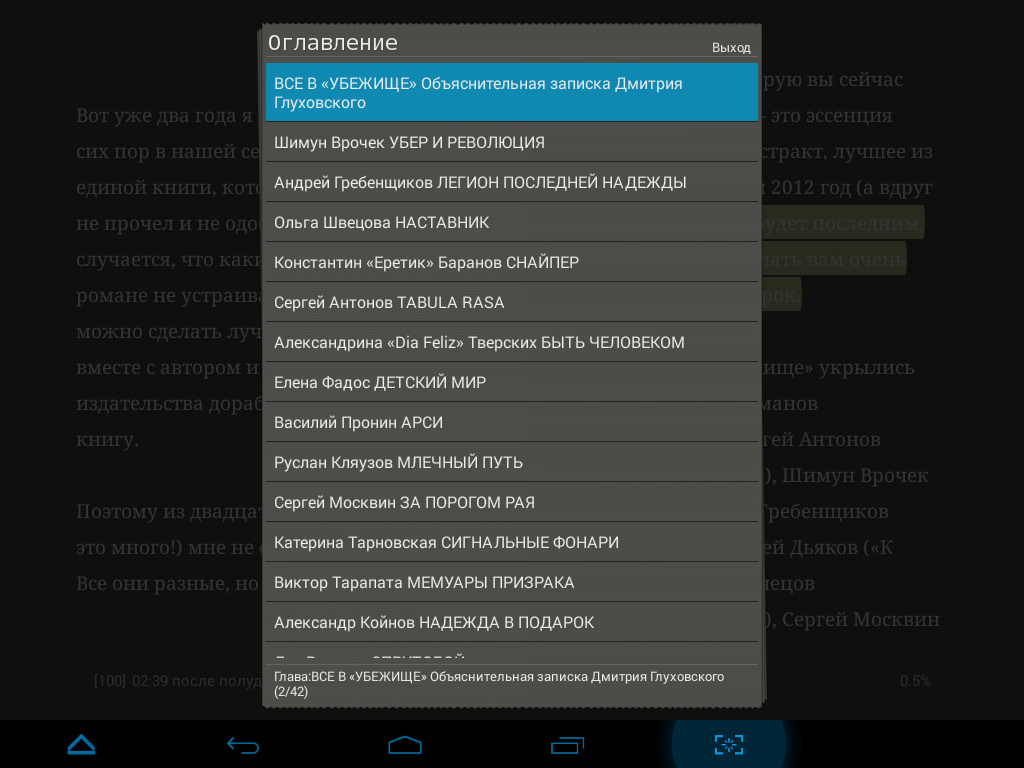 Кстати, этот ридер больше приспособлен к планшетам с физическими (аппаратными) кнопками, поэтому в нашем случае вместе с нижним и верхним сайдбаром всплывали еще функциональные (виртуальные) кнопки устройства. Как-то непривычно все это, как и постоянный полноэкранный режим, однако не будем мести все под нашу гребенку (планшет), может такое решение лучше себя покажет на полноценном планшете, а не на фаблете.