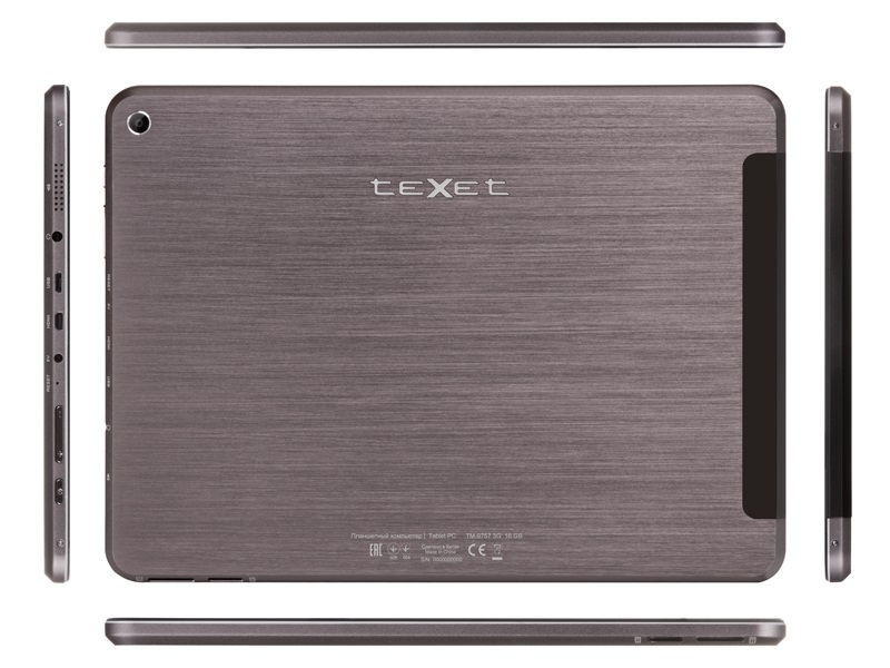 У teXet TM-9757 есть все необходимые беспроводные модули, в том числе поддержка мобильных сетей 3G. О качестве камер говорить не приходится: их разрешение составляет 2.0 и 0.3 Мпикс. При емкости батареи 7 800 мАч планшетный компьютер должен прослужить до шести-семи часов.