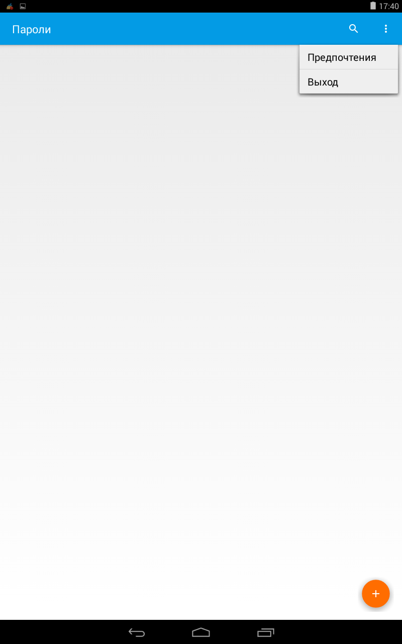 My Passwords по традиции сразу предлагает создать мастер-пароль. Далее мы попадаем на главный экран. Сам интерфейс программы минималистичен. В верхнем правом углу поиск по записям и «три точки» с настройками, которые здесь называются «предпочтениями». В нижнем правом – знак «+», предназначение которого нам уже понятно.