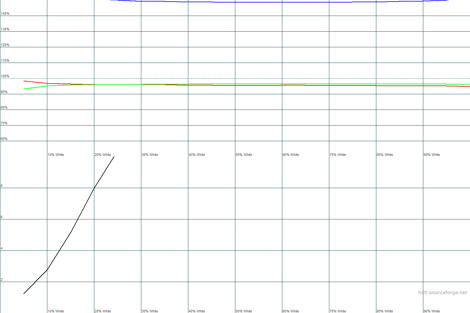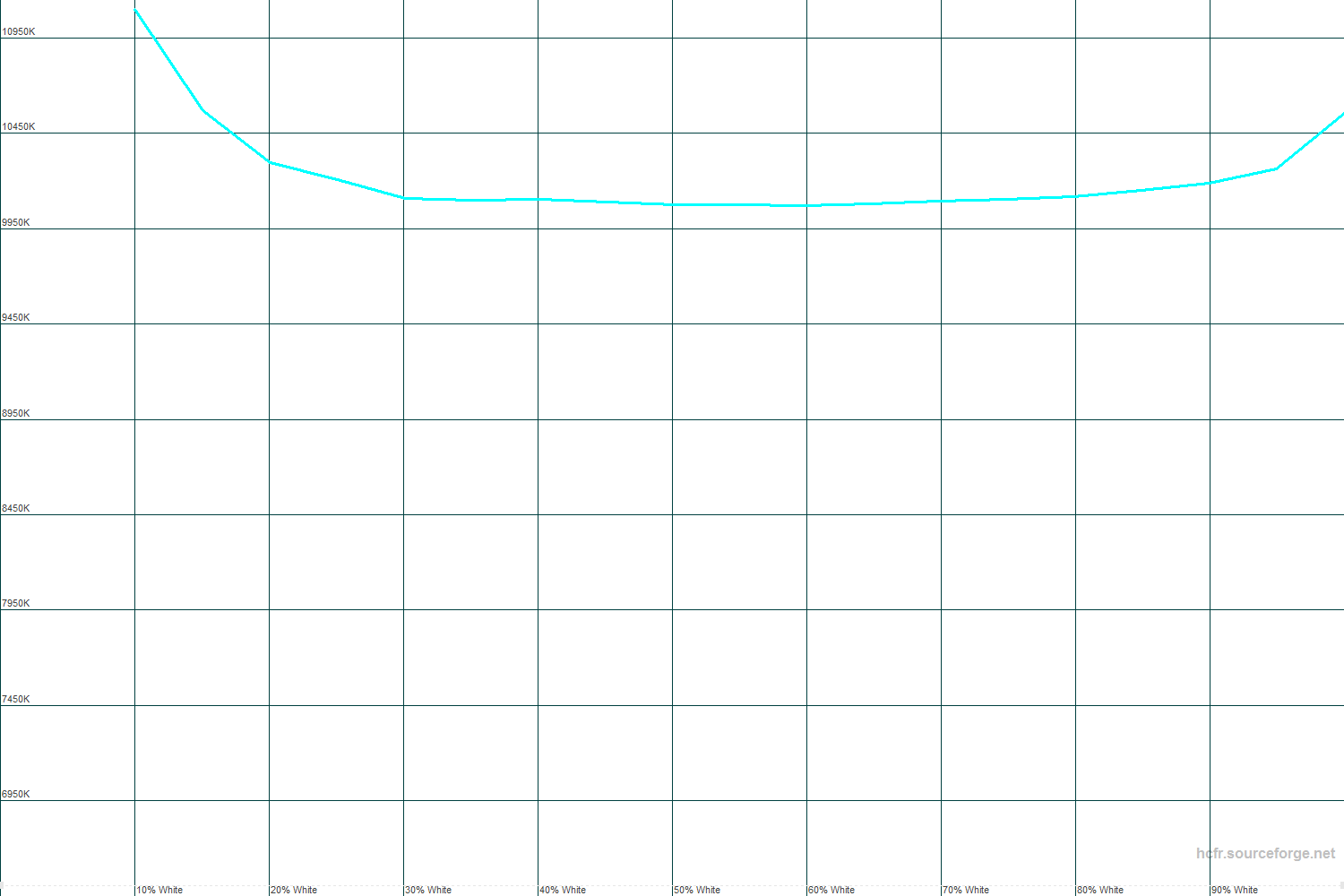 Красный и зеленый каналы настроены хорошо, а вот синий имеет отклонение более 50%, этим и объясняется такая высокая цветовая температура.