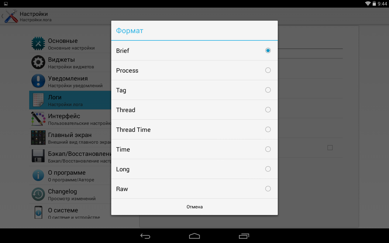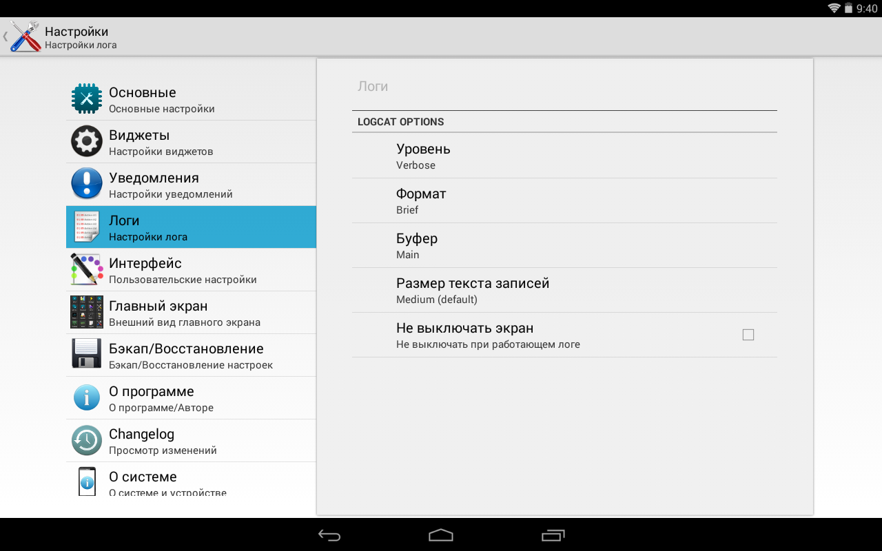 Для логов предусмотрена целая россыпь настроек. Параметризируется запись только ошибок или всего подряд, а также только предупреждений. Можно выбрать формат логов (например, long) и буфер (event, main и radio).