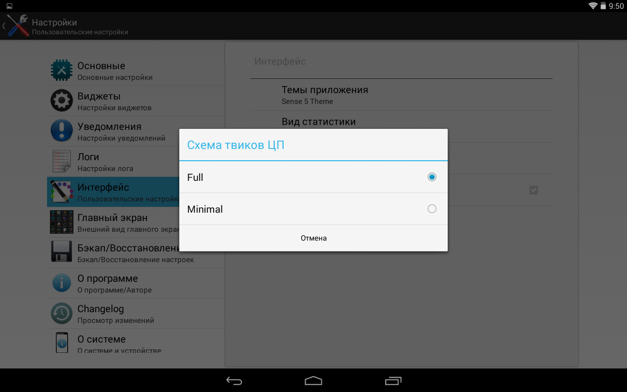 Предусмотрена и возможность выбрать схему отображения твиков CPU – полная или минимальная.