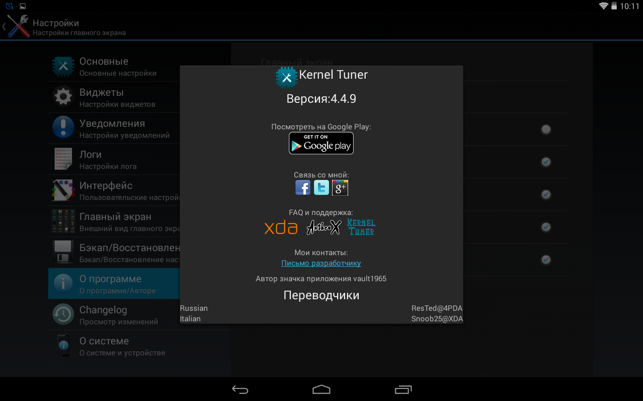 Если необходимо, то можно сделать (равно как и восстановить) «бэкап» основных настроек и базы данных. Ниже приводится информация о Kernel Tuner, последнем обновлении и о системе в целом. Здесь представлена вся подноготная, включая доступные говерноры (предустановки процессора), например, hotplug отключает ядра CPU при простое, но об этом мы поговорим ниже.