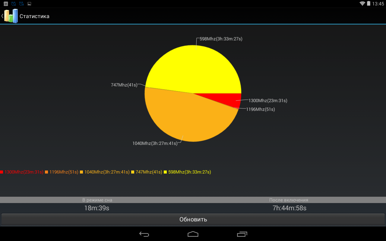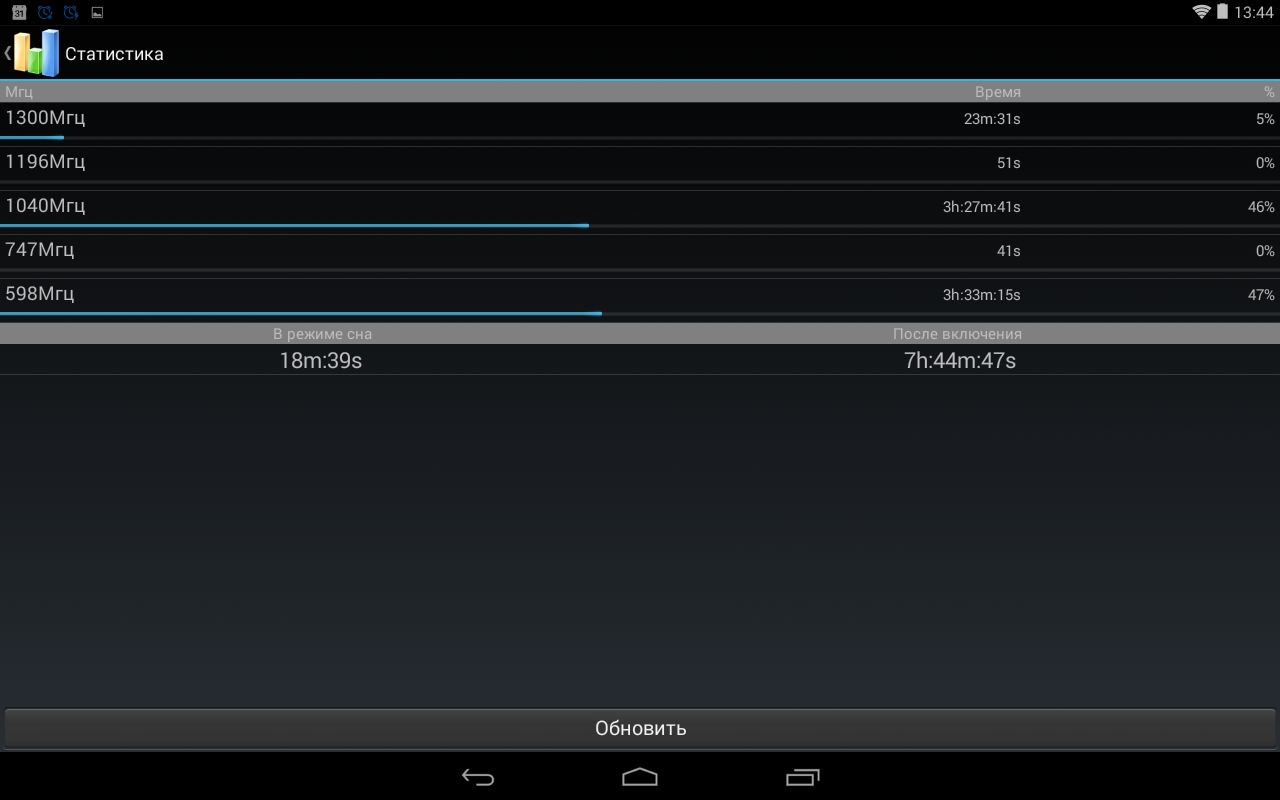 Статистика – отличное подспорье для тестирования своего гаджета, так как не только отображает время в режиме сна и после включения, но и показывает на какой частоте и сколько проработал сам процессор.