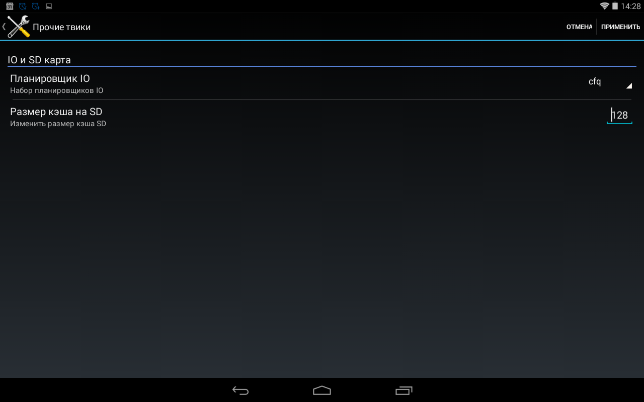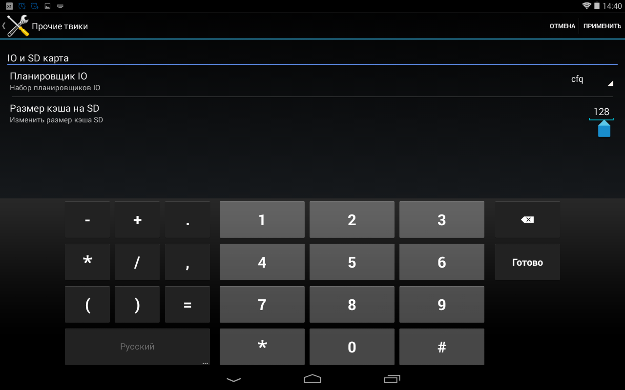 Ниже можно выставить любой размер кэша приложений на SD-карту. Разумеется, не надо гнаться за цифрами, 512 Мбайт будет достаточно. Если вы максималист, то выставьте 1024 Мбайт и успокойтесь.