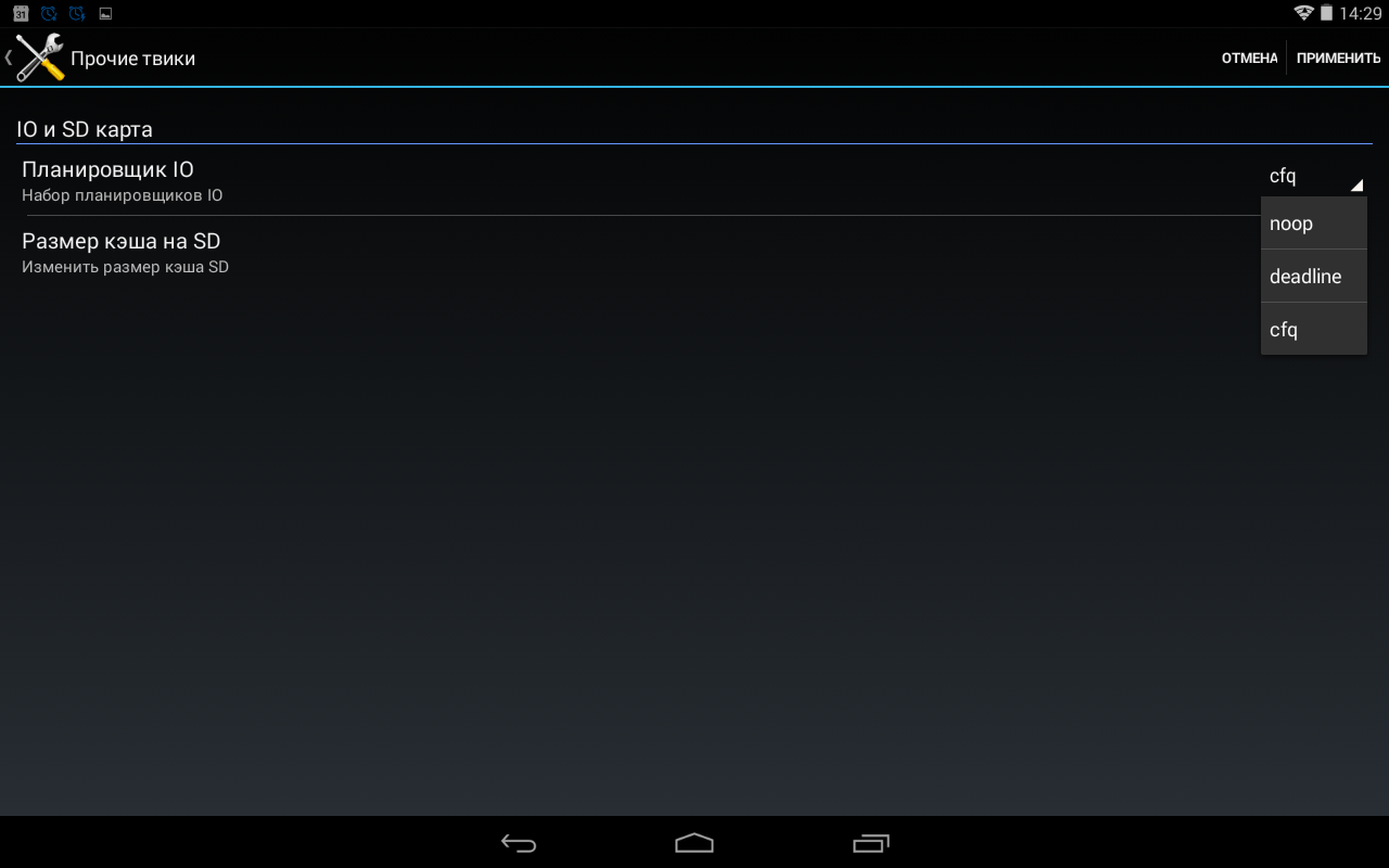Предусмотрено три планировщика ввода/вывода flash-памяти: noop, deadline и cfq. Так, noop-планировщик обладает минимальными возможностями и выполняет только простые операции объединения и сортировки, но зато и потребляет минимум ресурсов.