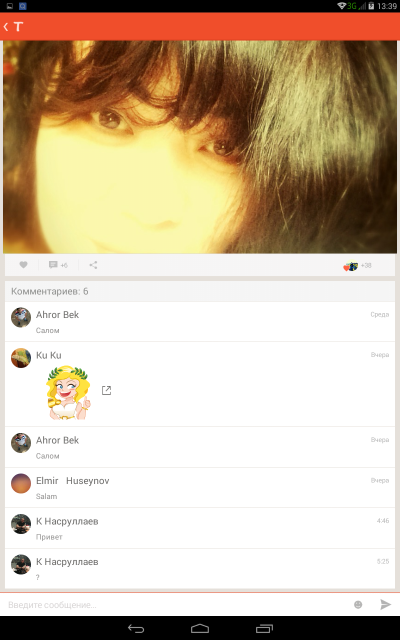 Наугад нашел девушку, предупредив, что это просто тест. При этом открылся ее профиль с полноразмерными фото и комментариями. Кстати, к сообщению прилагаются симпатичные смайлики. Здесь же можно поделиться в ленте этим событием, сохранить общение и отправить переписку в приватный чат.