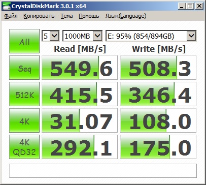 - CrystalDiskMark (64bit) версии 3.0.1 (стандартные настройки);