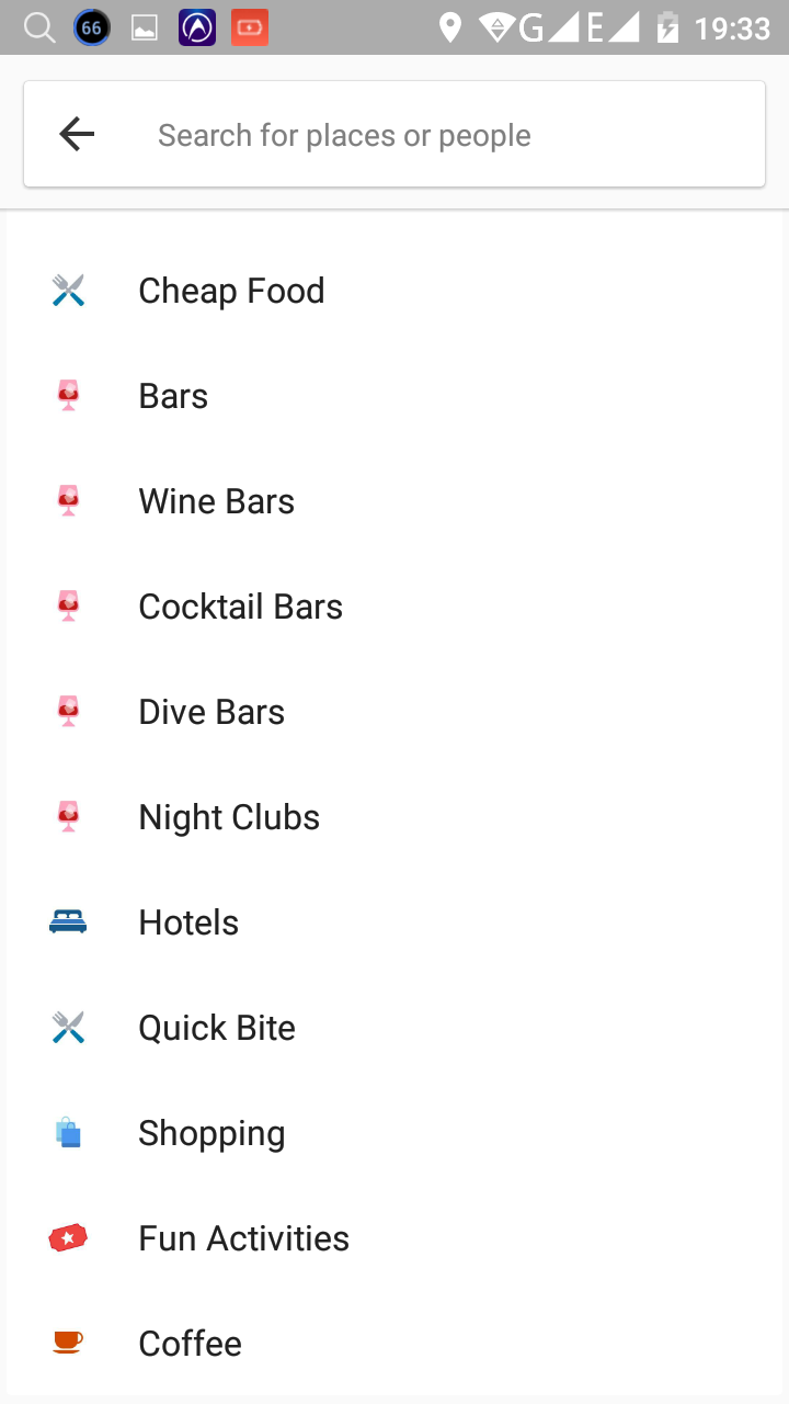 Итак, начнем. В самом верху главного экрана – поиск ближайших заведений, учреждений, отелей и прочего.