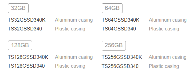 Спустя некоторое время компания Transcend возобновила производство 340-й серии форм-фактора 2.5" в двух исполнениях: в пластиковом и металлическом корпусах (в этом случае в названии присутствует буква «K»). Именно такой Transcend SSD340 и продается ныне в магазинах.