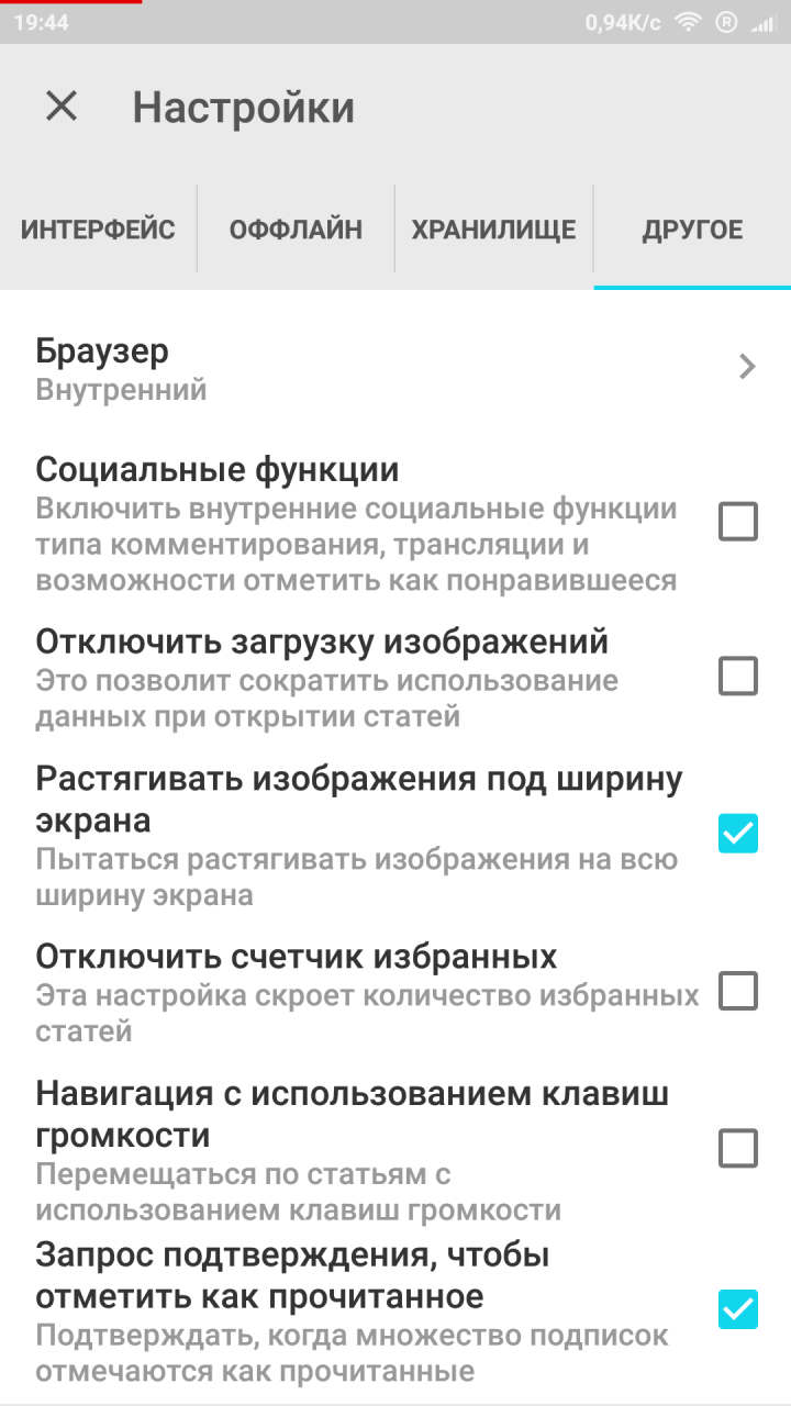 Параметров в программе Inoreader достаточно мало: по интерфейсу и функциям практически нет настроек, только по офлайн режиму и различным мелочам есть пара моментов.