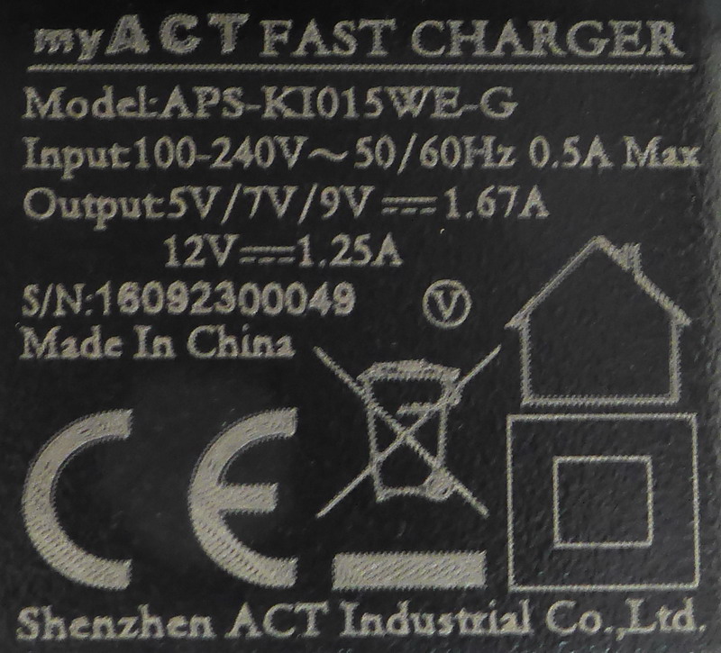 Зарядное устройство поддерживает отдачу на выход целого ряда напряжений – 5, 7, 9, 12 В. Отдаваемый ток составляет 1.67 А для напряжений 5-9 В, и 1.25 А для напряжения 12 В.
