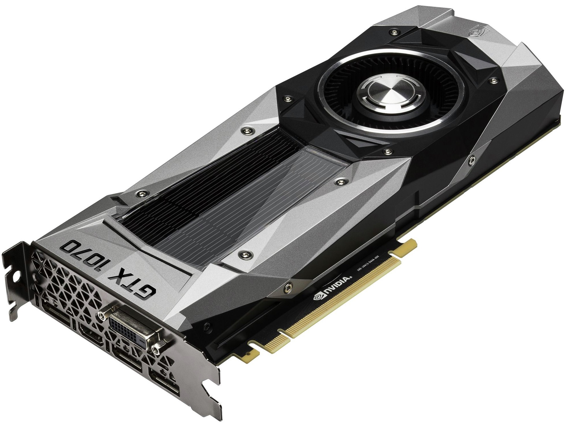 Вслед за флагманским решением спустя несколько дней была представлена слегка урезанная версия видеокарты на базе того же графического процессора GP104. Новинка ожидаемо получила название GeForce GTX 1070.