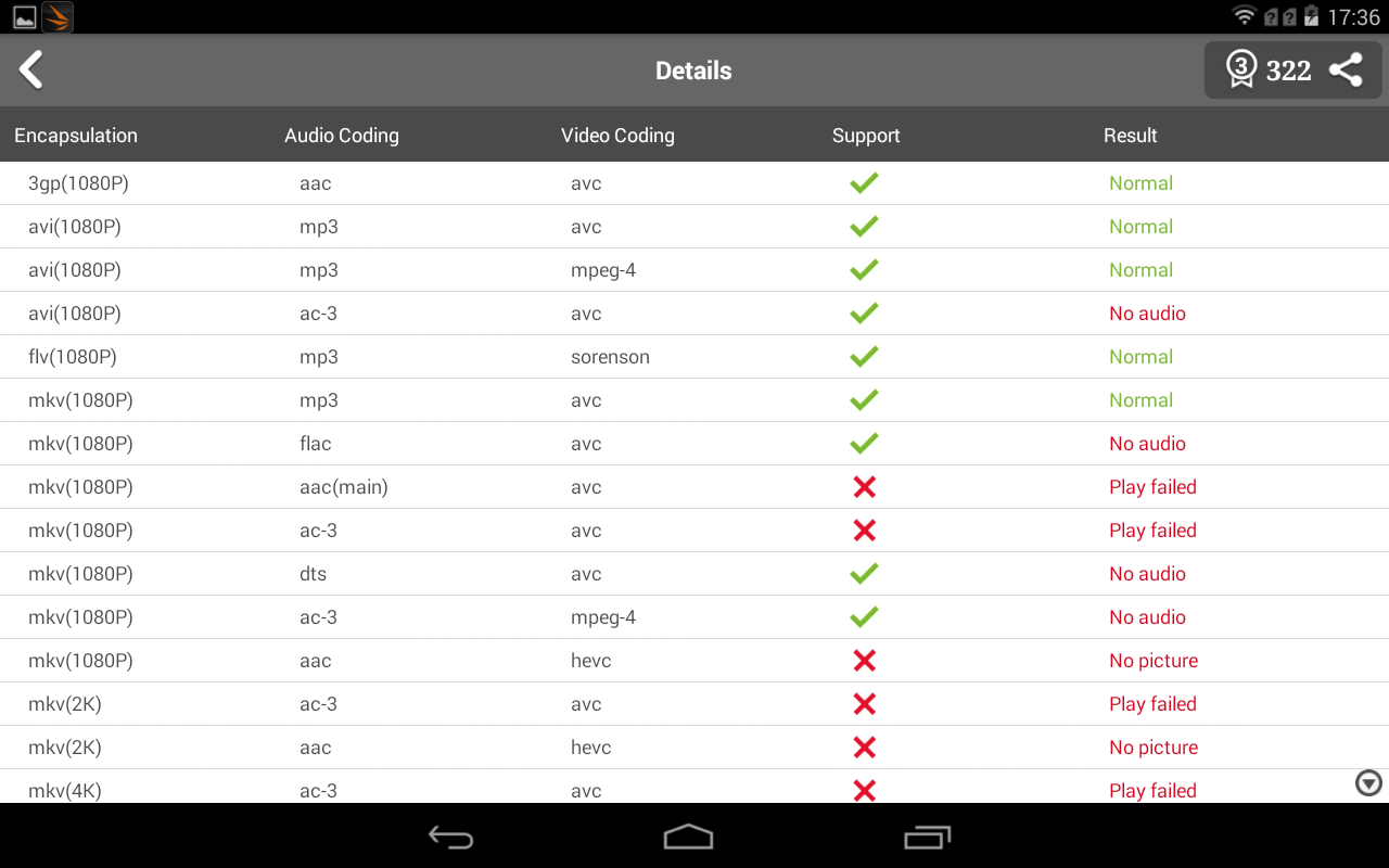 Для начала с помощью AnTuTu Video Tester оценим способность героя обзора аппаратно воспроизводить видеофайлы различных форматов.