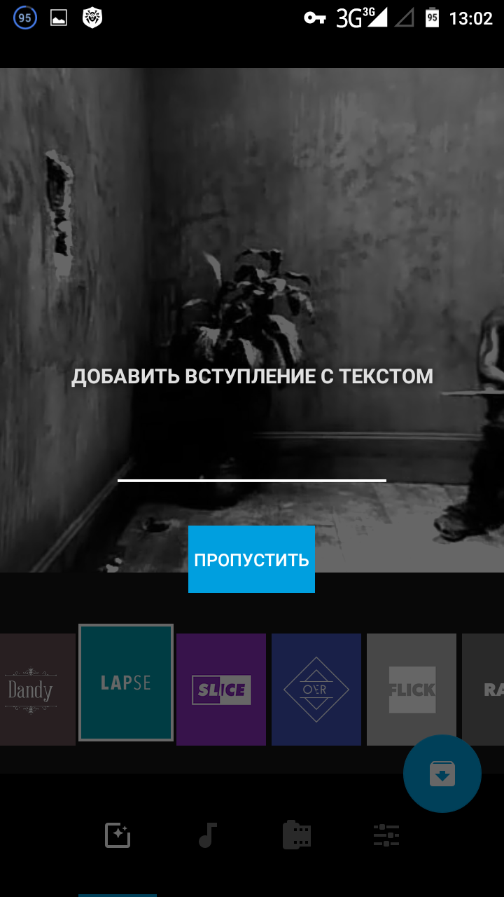 После того, как выбрали файл открывается видеоредактор. Первое, что можно сделать, это добавить вступление с текстом. Это может быть название клипа или краткая аннотация к нему.