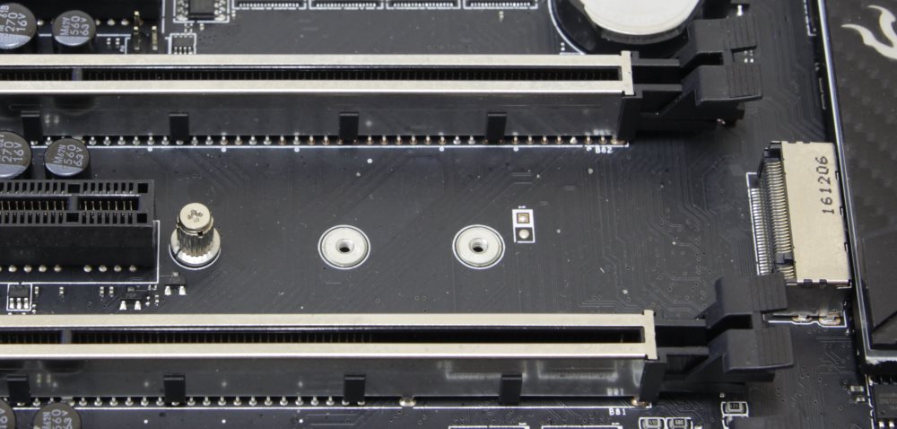 Он поддерживает как накопители с шиной PCI-e так и SATA. В первом случае он берет четыре линии PCI-e Gen3 от процессора и делит их с портом U.2. Во втором он просто работает вместо одного порта SATA.