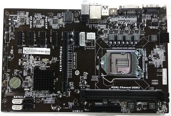 Устаревший, зато недорогой набор системной логики, множество разъемов PCI-Express, разъемы дополнительного питания у слотов PCI-Express и, разумеется, говорящее название – вполне себе хороший задел для построения майнинг-«фермы».