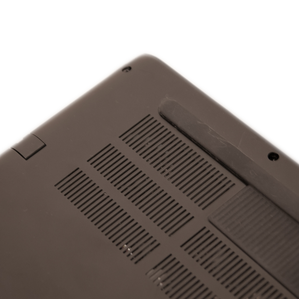 На нижней стороне имеются две резиновые «ножки-полоски». Остальное место выделено либо под юридическую информационную наклейку, либо под охлаждающие прорези и немного закрытого пластика. Никаких дополнительных крышек под замену HDD или SSD нет.