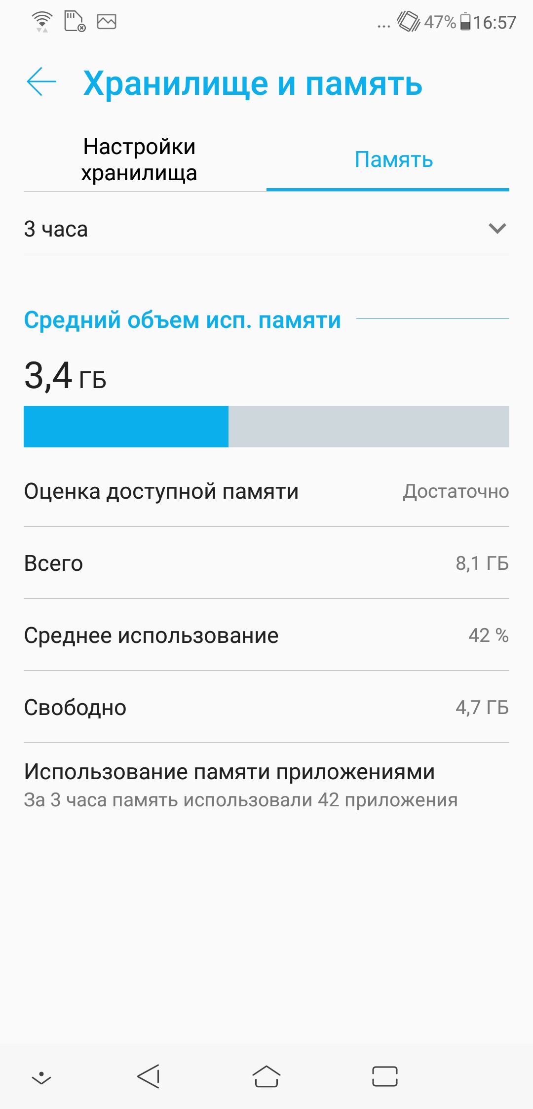 Объем оперативной памяти равен 8 Гбайт. В младших модификациях ASUS ZenFone 5Z ZS620KL этот показатель может составлять 4 или 6 Гбайт.
