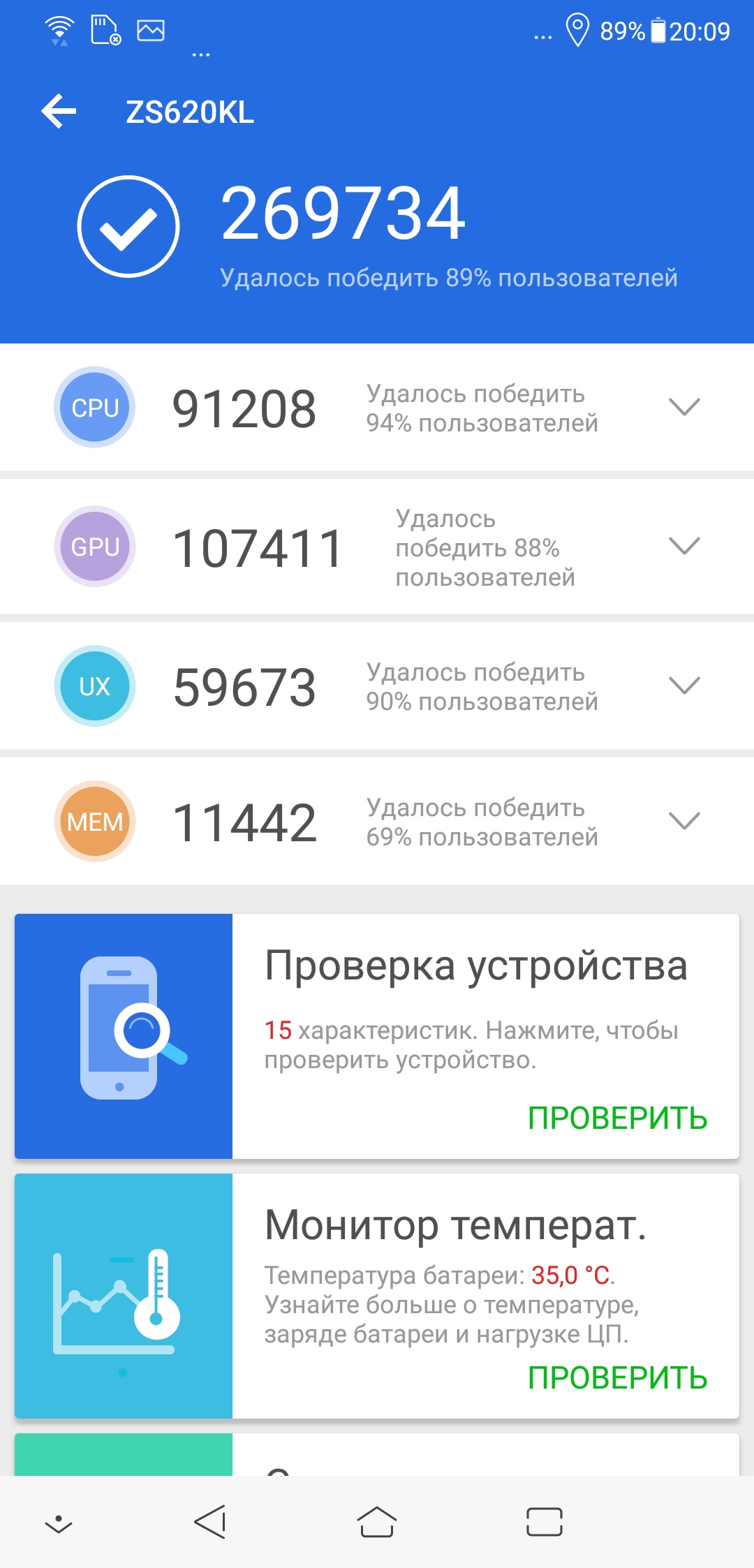 Посмотрим, какие результаты покажет флагман ZenFone в различных синтетических бенчмарк-тестах.