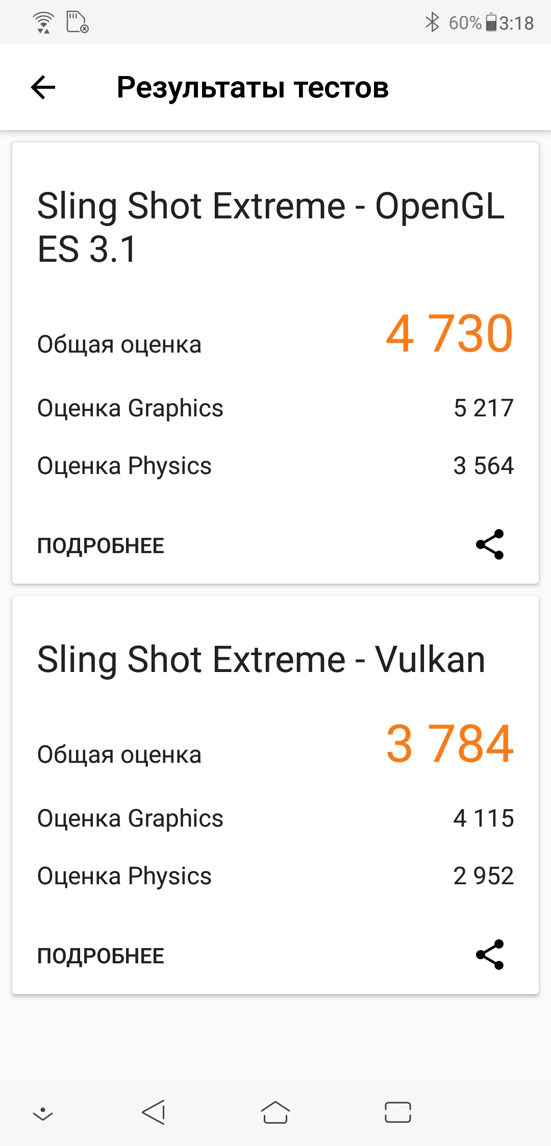 В целом ситуация совпала с ожиданиями и сравнима с другими аппаратами, построенными на аналогичной SoC. Запаса производительности хватит для любых современных задач, включая «тяжелые» игры.
