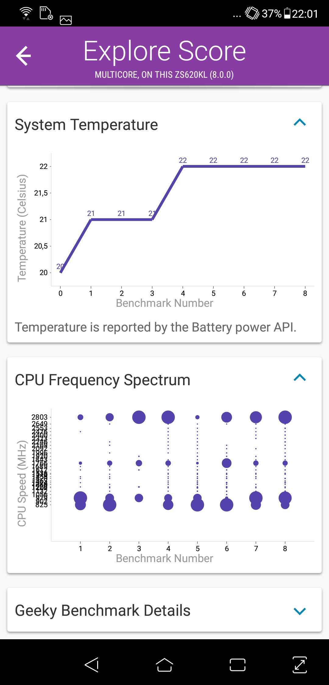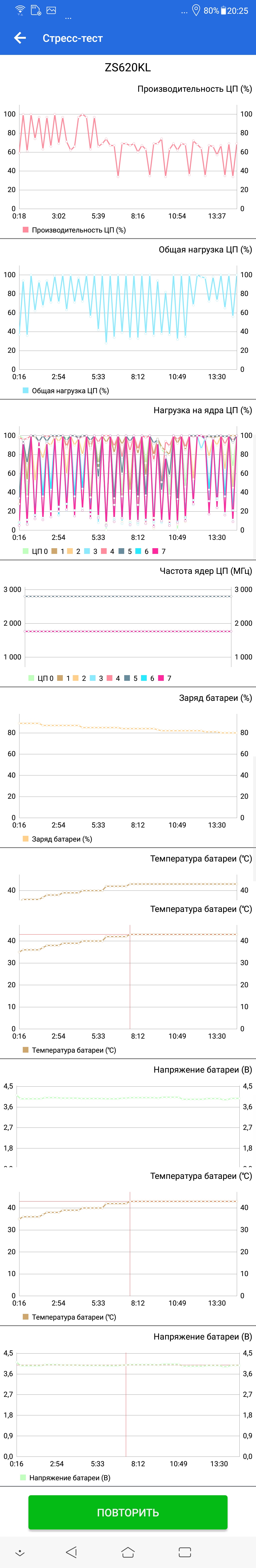 При работе с производительным «железом» немало внимания уделяется вопросу охлаждения. Посмотрим на результаты тестирования стабильности и постараемся понять, насколько ASUS ZenFone 5Z ZS620KL склонен к нагреву и троттлингу.