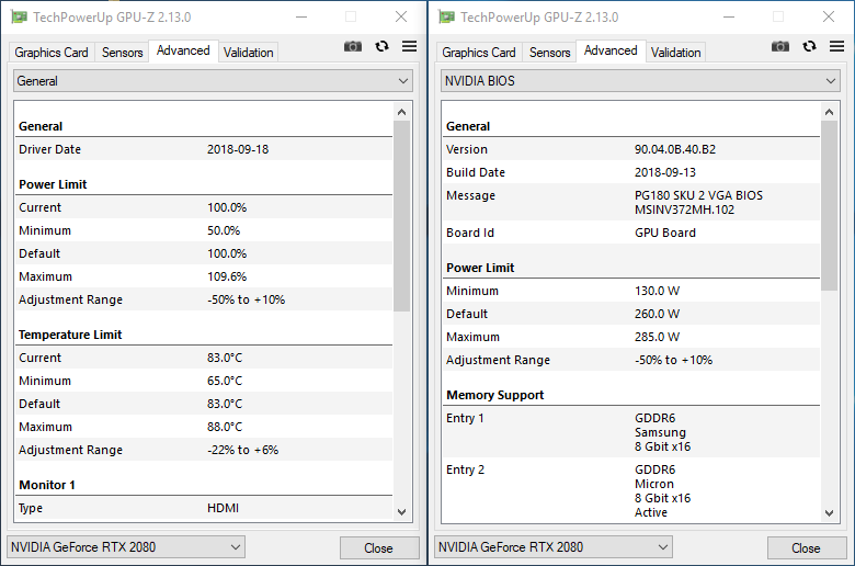 Видеокарты уровня GeForce RTX 2080 и GeForce RTX 2080 Ti очень требовательные и прожорливые, поэтому производителям приходится на уровне BIOS ограничивать уровень TDP, чтобы сдержать неизмеримый аппетит новинок.