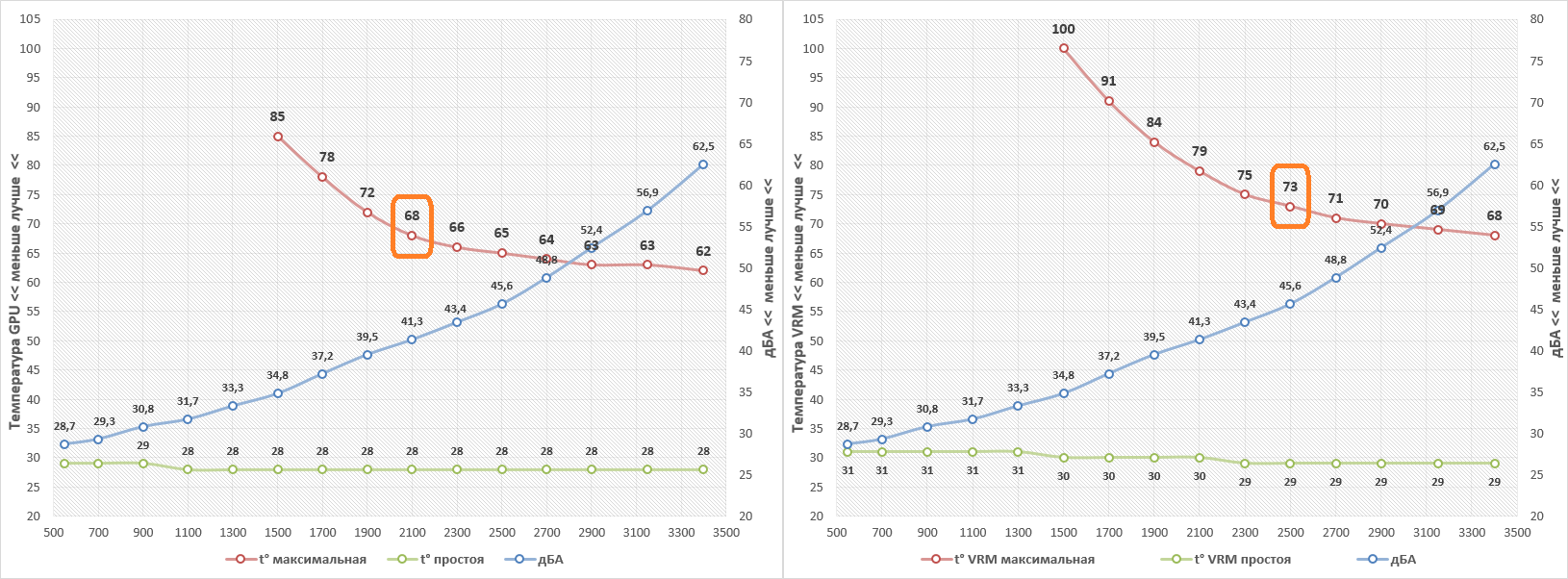 Теперь и комфортный уровень шума с приемлемой производительностью, да и температуры в порядке.