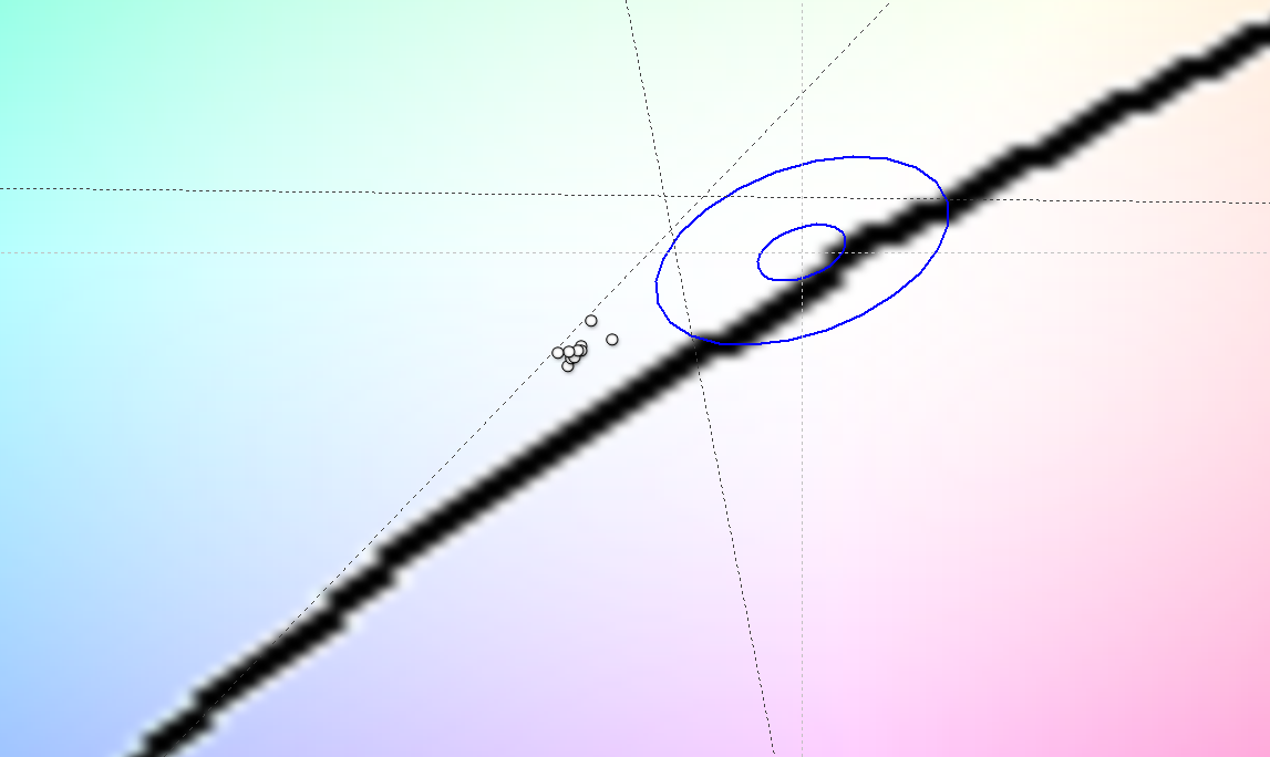 Точки серого клина сгруппировались совсем близко к границам дельты. Паразитные оттенки не будут создавать дискомфорта для пользователя.