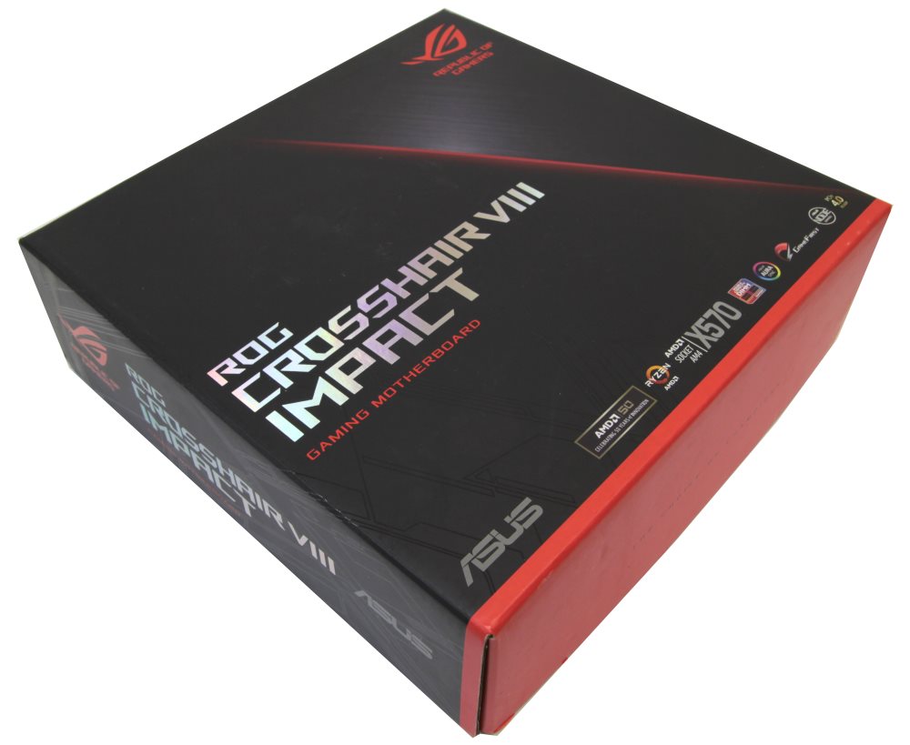 Это уже восьмое поколение материнских плат линейки Crosshair, которая выпускается исключительно для платформ AMD. Однако, следует отметить, что это первый Impact. Ранее такие модификации выпускались только для платформы Intel в линейке Maximus. При этом Maximus VIII Impact – материнская плата формата mini-ITX, а вот Crosshair VIII Impact выполнена в формате mini-DTX, что все же немного крупнее. Ее габариты составляют 203 х 170 мм.
